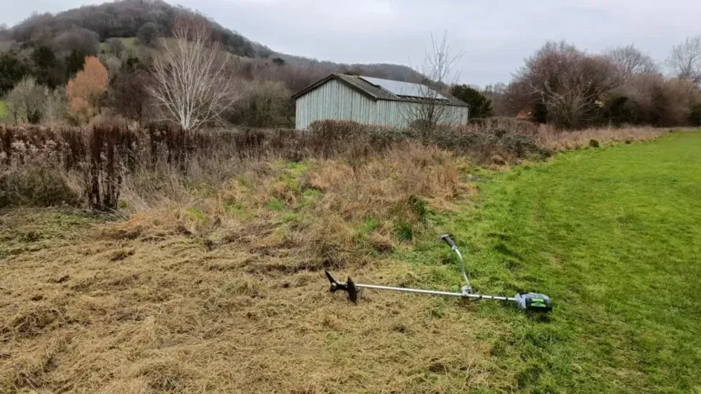 On a day in April '24 six volunteers brushcut a part of the bank, and then raked the cuttings off the area into brash pile lower down the field. Further brushcuts and raking have been done during December '24 and January '25.
